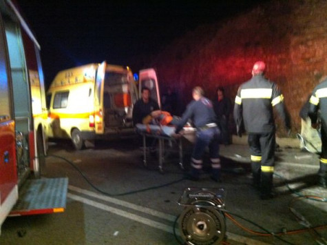 Χάος στο δρόμο Λαμίας Δομοκού - Μεγάλη επιχείρηση για τον απεγκλωβισμό του οδηγού του αυτοκινήτου Το τροχαίο έγινε λίγο μετά τις 19.00. Το Citroen C5 που οδηγούσε 29χρονος Αλβανός, κάτοικος Λαμίας με συνεπιβάτη έναν φίλο του, κατέβαινε προς Λαμία. Σε μια στροφή στο 12ο χλμ. έχασε τον έλεγχο, πέρασε στο αντίθετο ρεύμα και χτύπησε το φορτηγό που ανέβαινε, για να βρεθεί στη συνέχεια απέναντι στα βράχια.