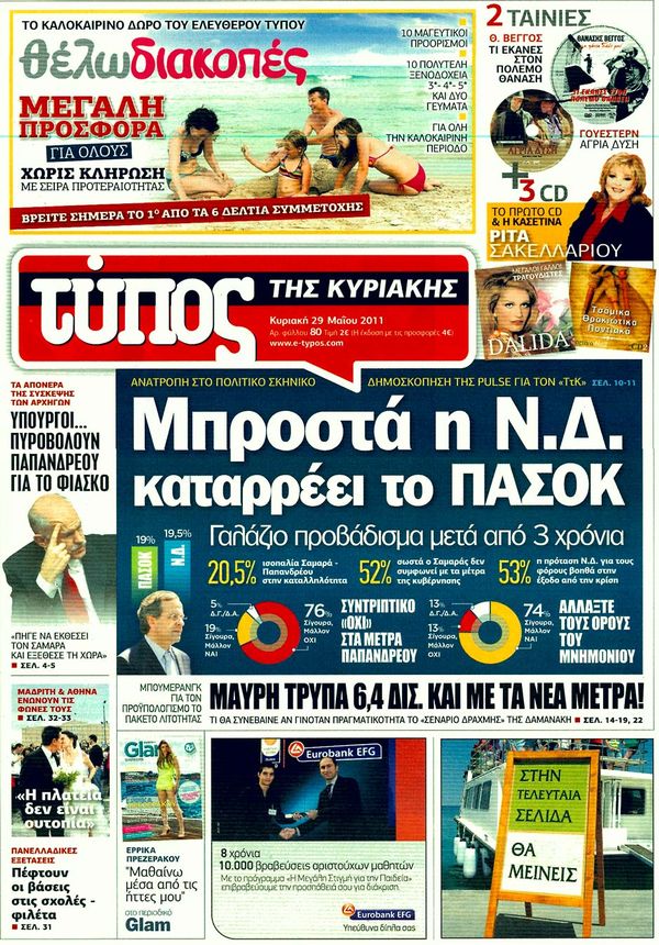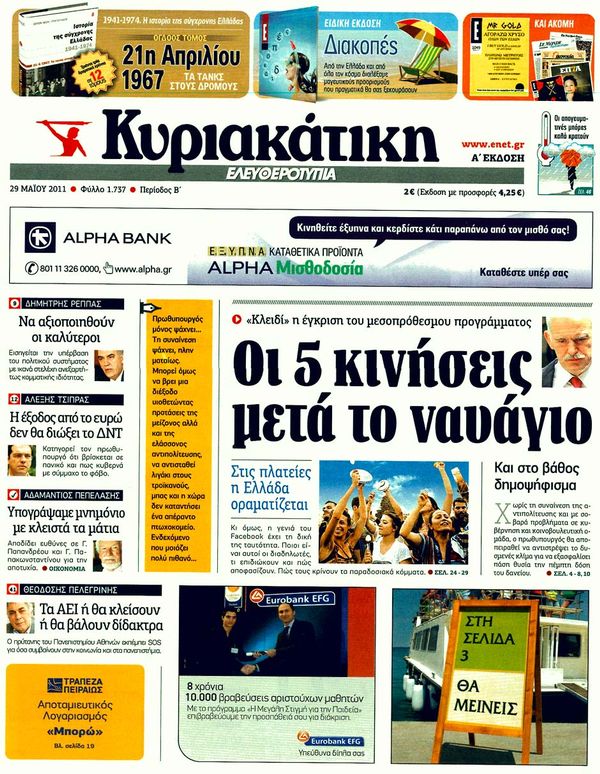 Τα πρωτοσέλιδα του σημερινού Τύπου...